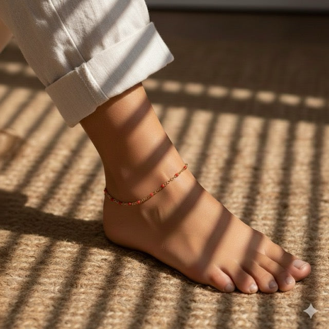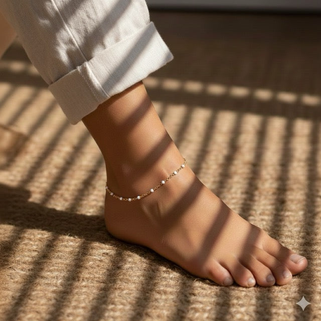 خلخال من خرز المينا الرقيق مع وصلات ذهبية، مثالي لإضافة لمسة رقيقة من اللون إلى أسلوبك.